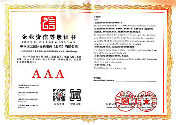 中保國(guó)衛(wèi)國(guó)際保安服務(wù)(北京)有限公司,屬中保國(guó)衛(wèi)集團(tuán)旗下子公司。能全方位的為大型客戶提供優(yōu)質(zhì)的安保、押運(yùn)服務(wù),是集人防和技防于一體的新型正規(guī)化綜合安保押運(yùn)服務(wù)企業(yè),提供人防、物防、技防、聯(lián)網(wǎng)報(bào)*、非武裝押運(yùn)等安防相關(guān)的一站式服務(wù)。 公司在國(guó)內(nèi)多省設(shè)立有分公司及分支機(jī)構(gòu),著重提升安全押運(yùn)、智能技術(shù)押運(yùn)及安全技術(shù)防范相關(guān)的服務(wù),業(yè)務(wù)范圍覆蓋全國(guó)一、二線城市、港澳地區(qū)以及海外地區(qū)。安保方面主要為政府機(jī)構(gòu)、金融機(jī)構(gòu)、企事業(yè)單位、醫(yī)療衛(wèi)生、高等院校、工業(yè)園區(qū)、大型商場(chǎng)、高檔住宅、智能商務(wù)樓、大型活動(dòng)提供門衛(wèi)、守護(hù)、巡邏、押運(yùn)(非武裝)、安全檢查、保安特勤、私人護(hù)衛(wèi)、消防中控、安全技術(shù)防范、遠(yuǎn)洋護(hù)航等全方位服務(wù),同時(shí)面向國(guó)際市場(chǎng),為中資企業(yè)在“一帶一路”沿線國(guó)家投資提供境外安保服務(wù)。 >> 更多內(nèi)容 |